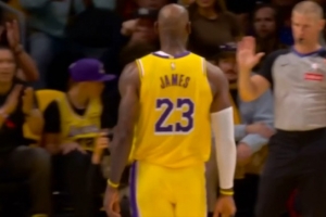 表示很無辜!詹姆斯背打強碾得分手指裁判泰勒·福特 后者攤手