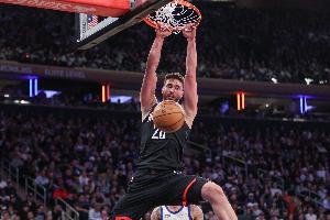 申京上半場出戰(zhàn)17分鐘7投5中拿到10分4籃板5助攻2蓋帽,正負值-2,多次上演暴扣。