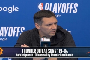 體育資訊4月20日訊 NBA季后賽西部首輪G1,雷霆119-84大勝太陽35分,戴格諾特賽后接受了媒體采訪,以下是完整采訪內容。