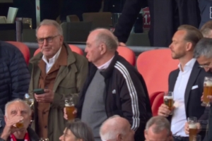 據德國媒體《圖片報》報道,拜仁高層在VIP看臺區域小酌,慶祝球隊衛冕,赫內斯和海納喝了小麥啤酒,魯梅尼格則選擇喝白葡萄酒。