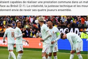體育資訊03月28日訊 法國隊在友誼賽中2-1擊敗巴西隊,法媒《隊報》撰寫文章,分析了法國隊目前的前場四人組,即姆巴佩-?;倏?奧利塞-登貝萊的組合,這四人創造力十足,并且優勢互補。文章內容如下:
