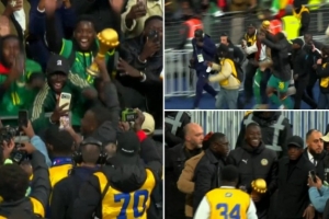 據RMC在現場的報道,塞內加爾中場帕佩·蓋耶和球迷們進行了瘋狂慶祝。他手持非洲杯獎杯,和看臺上的球迷足足互動了十分鐘。