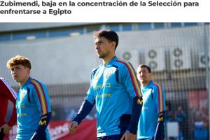 馬丁·蘇維門迪因右膝不適退出西班牙國家隊(duì)集訓(xùn)。為避免任何風(fēng)險并保障球員健康,他已被移出球隊(duì)下一場對陣埃及的名單。阿森納足球俱樂部醫(yī)療團(tuán)隊(duì)已獲悉此事。