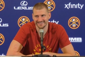 賽后,約基奇接受采訪,談到凱特琳·克拉克賽前說自己是世界上最好的球員,約基奇笑著說:“我們有同一個經紀人,這就是她這么說的原因。”