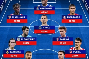 前鋒:尼科·威廉姆斯(5000萬歐)、阿格霍瓦(4500萬歐)、帕爾多(3000萬歐)