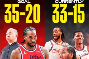 去年12月,泰倫·盧為洛杉磯快船設(shè)定了一個(gè)明確的目標(biāo):以35勝20負(fù)的成績(jī)強(qiáng)勢(shì)結(jié)束本賽季。