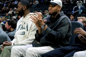 在字母弟罰球得分時,字母哥在場邊大喊道:“嘿,伙計,我現在就能夠退役啦。我已經做到了一切,伙計。”