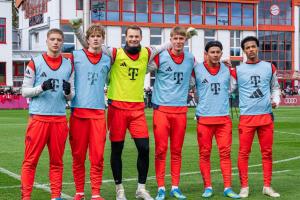 體育資訊4月2日訊 本周,拜仁主帥孔帕尼征召了多達(dá)12名青訓(xùn)營(yíng)小將參加訓(xùn)練,隊(duì)長(zhǎng)諾伊爾在社媒上發(fā)布了一張和5名小將合影的照片。《圖片報(bào)》對(duì)這5名小將進(jìn)行了介紹。