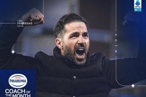 3戰全勝!官方:科莫主帥法布雷加斯當選意甲3月最佳主帥