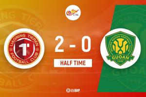 第45分鐘,姆本扎傳中,熱菲尼奧包抄推射破門,遼寧鐵人2-0北京國(guó)安。↓