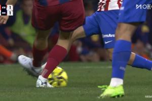 下半場(chǎng)比賽剛剛開(kāi)始,馬丁拼搶時(shí)蹬踏阿爾馬達(dá),主裁判一開(kāi)始對(duì)其出示直紅。回放顯示,馬丁解圍先踢到皮球。VAR介入,主裁親自觀看回放后改判為黃牌!