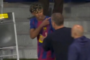 弗里克本想與亞馬爾慶祝,但后者對他說了一些話,讓這位德國教練感到驚訝。在返回更衣室的路上,亞馬爾與教練組成員情緒激動地交流。