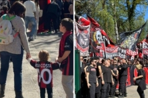 4000名或許更多戴著紅黑圍巾、身著萊奧、魯伊·科斯塔、馬爾蒂尼和莫德里奇球衣的球迷們涌向米蘭基地。南看臺揮舞著旗幟,擂響戰鼓。在對陣那不勒斯賽前兩天,米蘭球迷們涌向米蘭內洛觀看球隊訓練。這場景宛如集訓首日,氣溫雖然還沒到7月那種程度,但也足以向春天致敬。畫面令人震撼,米蘭顯然備受鼓舞:以隊長邁尼昂為首,球員們走向米蘭內洛入口的小徑與看臺球迷會面。歌聲、掌聲交織,仿佛回到了90年代,或者是2022年皮奧利奪冠時的盛況。