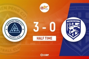 傷停補(bǔ)時(shí)4分鐘。上半場(chǎng)比賽結(jié)束,深圳新鵬城3-0武漢三鎮(zhèn)。