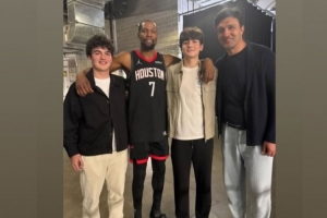 賽后,杜蘭特在INS轉發了一張自己和帕楚利亞及其兒子們的合影。