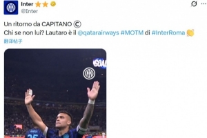 他也在今日被俱樂部官方評選為本場比賽的隊內MVP。國米官方也點評道:“隊長回歸!除了他還能是誰呢?勞塔羅當選國米vs羅馬的隊內MVP。”